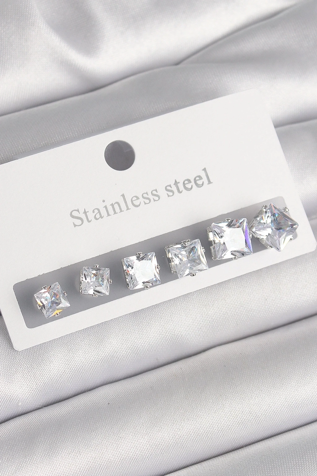 316L Çelik Gümüş Renk Kare Zirkon Taşlı Kadın Küpe Seti