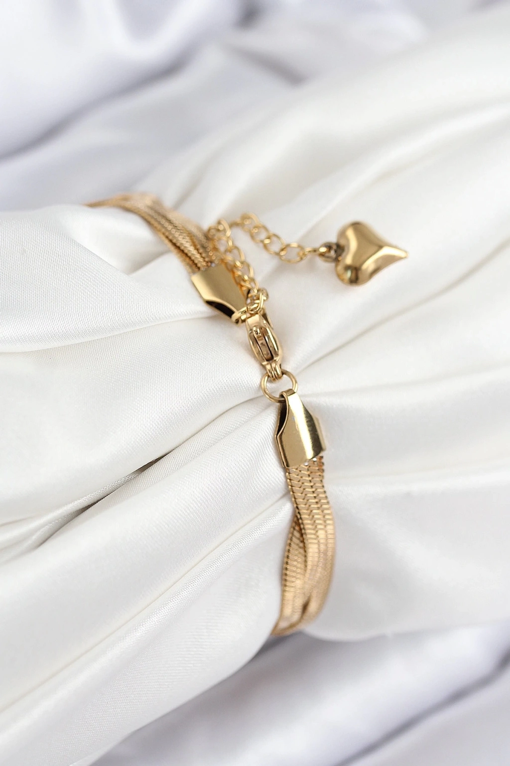 Pirinç Gold Renk Levha Model Kadın Bileklik