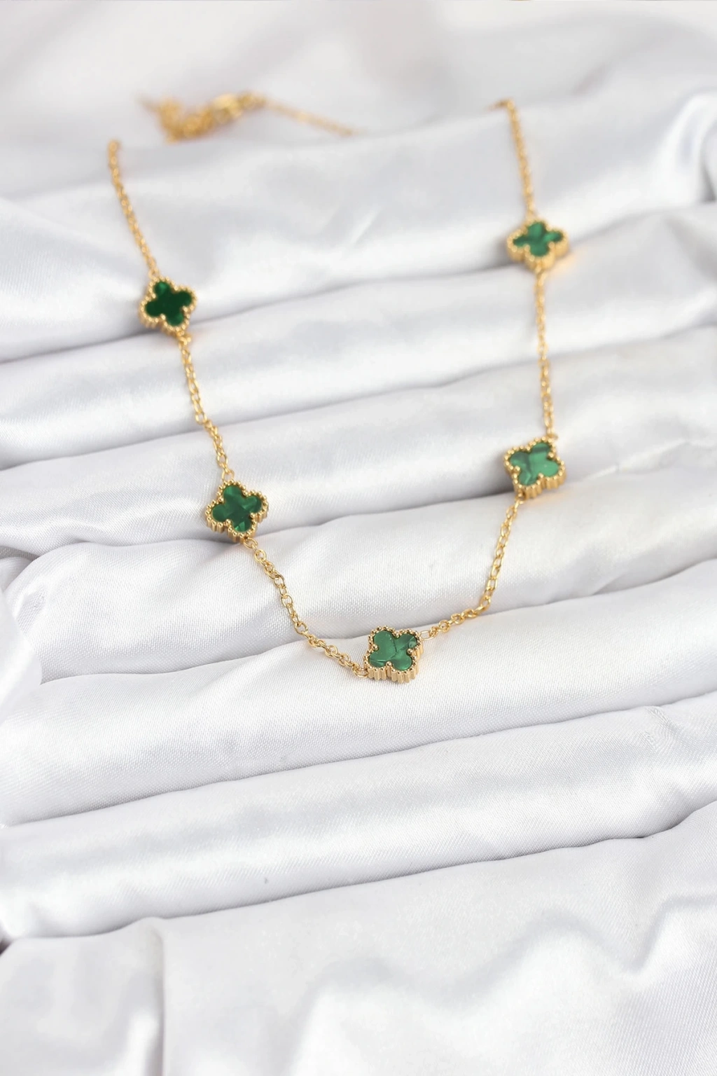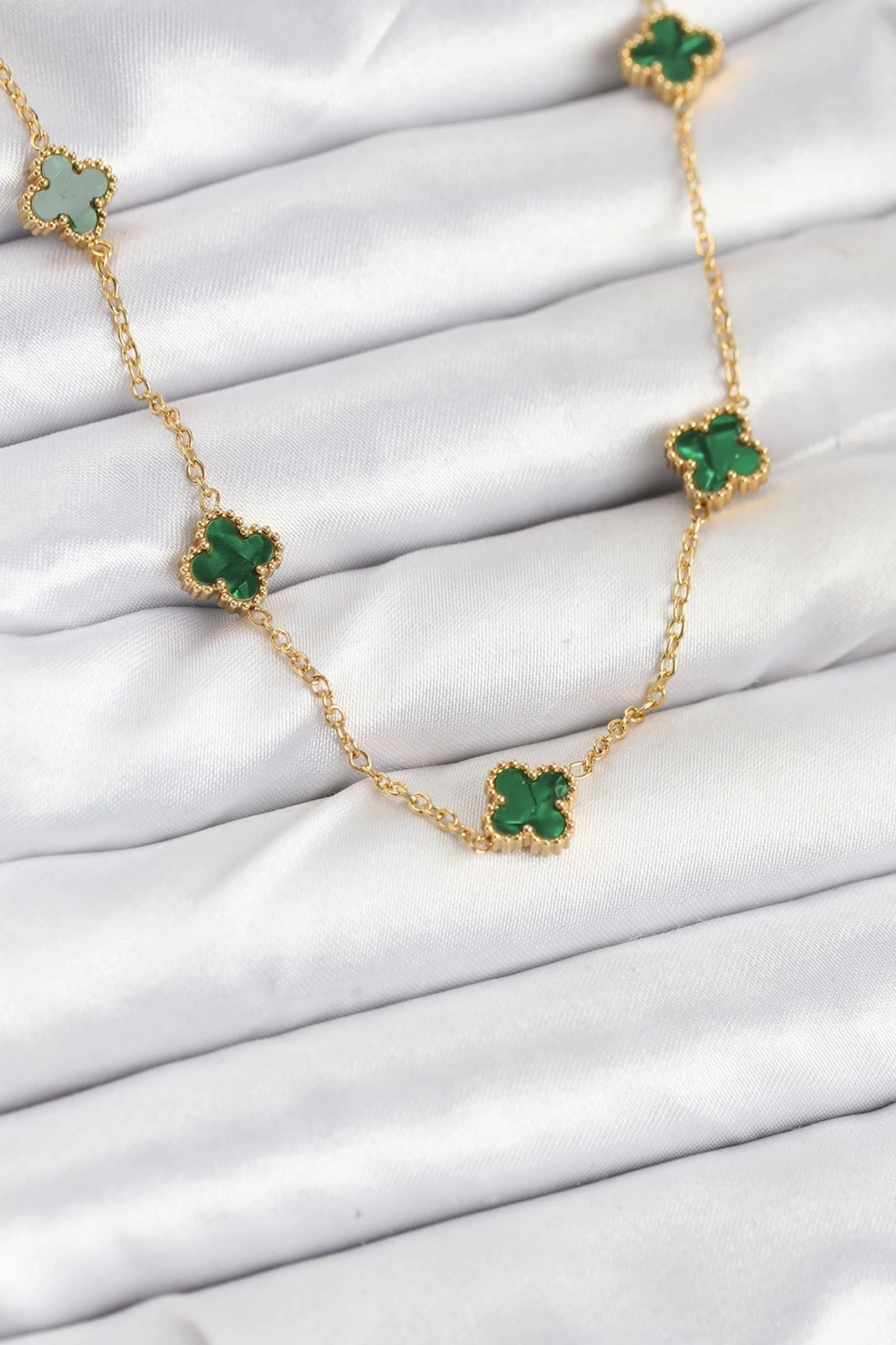 316L Çelik Zincir Gold Renk Yeşil Baby Boy Yonca Kadın Kolye
