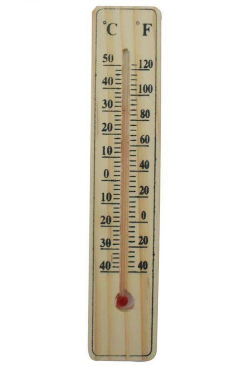 Sıcaklık ölçümü : -40C / 50C Ölçü birim : C ve F Ahşap naturel Her zemine yapışır (sticker) veya askılıklı İç Ortam -Ölçüler : 15 cm x 3,5 cm -Civa ve kurşun içermez