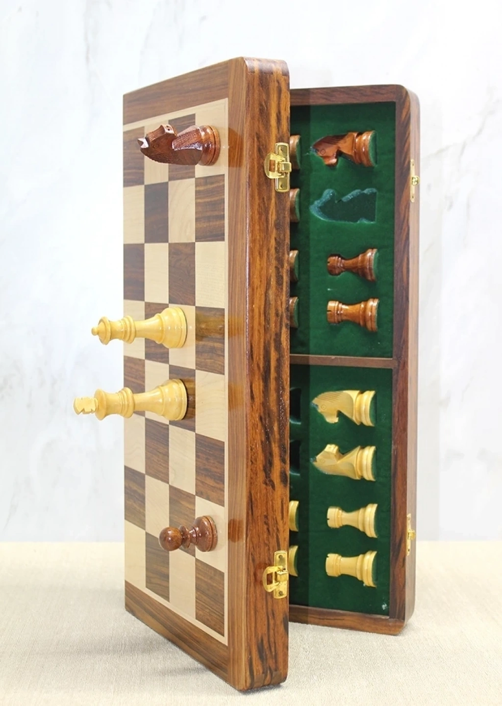 Özel Vernikli Mıknatıs Taşlı Ahşap Katlanabilir Kutulu Satranç Oyunu 30 Cm G223
