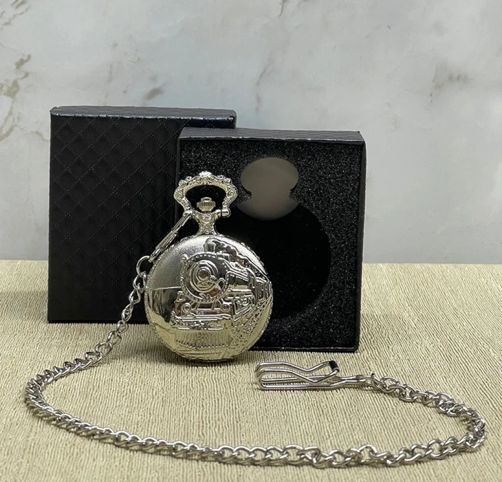 Özel Kutulu Tren Temalı Gümüş Köstekli Saat Alk4657 Ürün Ölçüleri 4*5 Cm