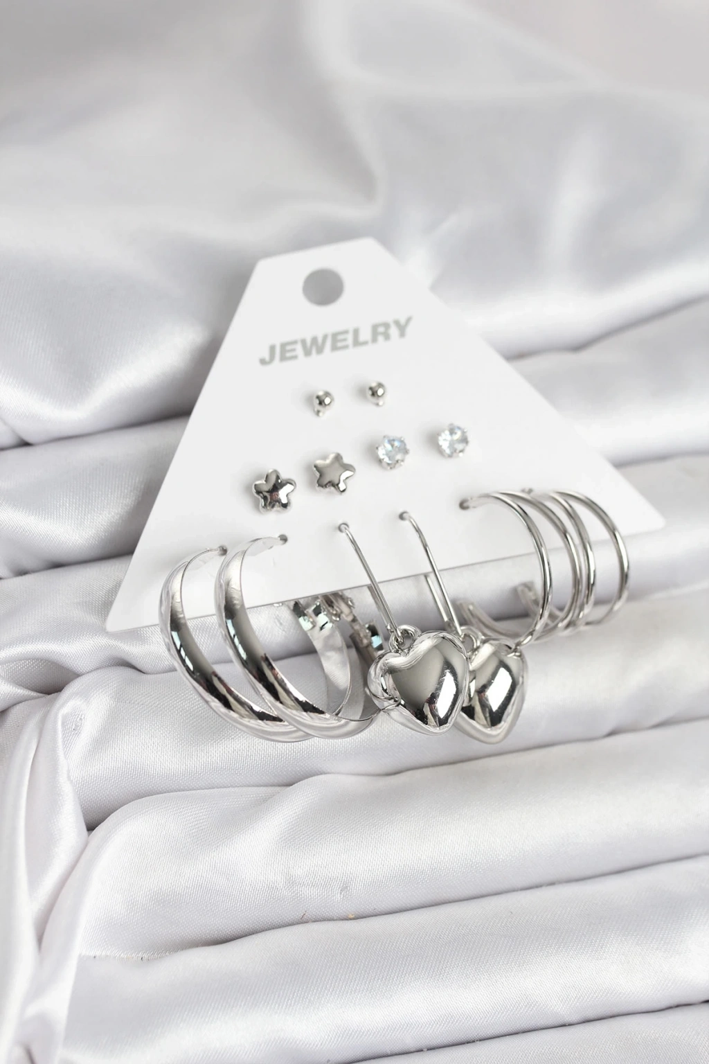 Pirinç Gümüş Renk 6 Çift Kadın Küpe Seti