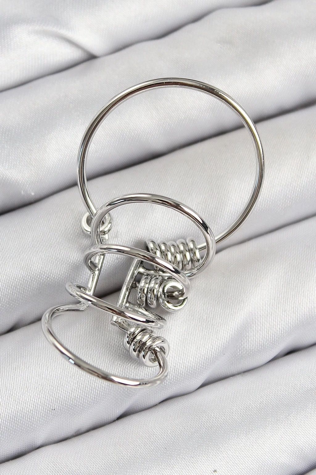 Pirinç Halkalı Model Gümüş Renk Kıkırdak Küpe