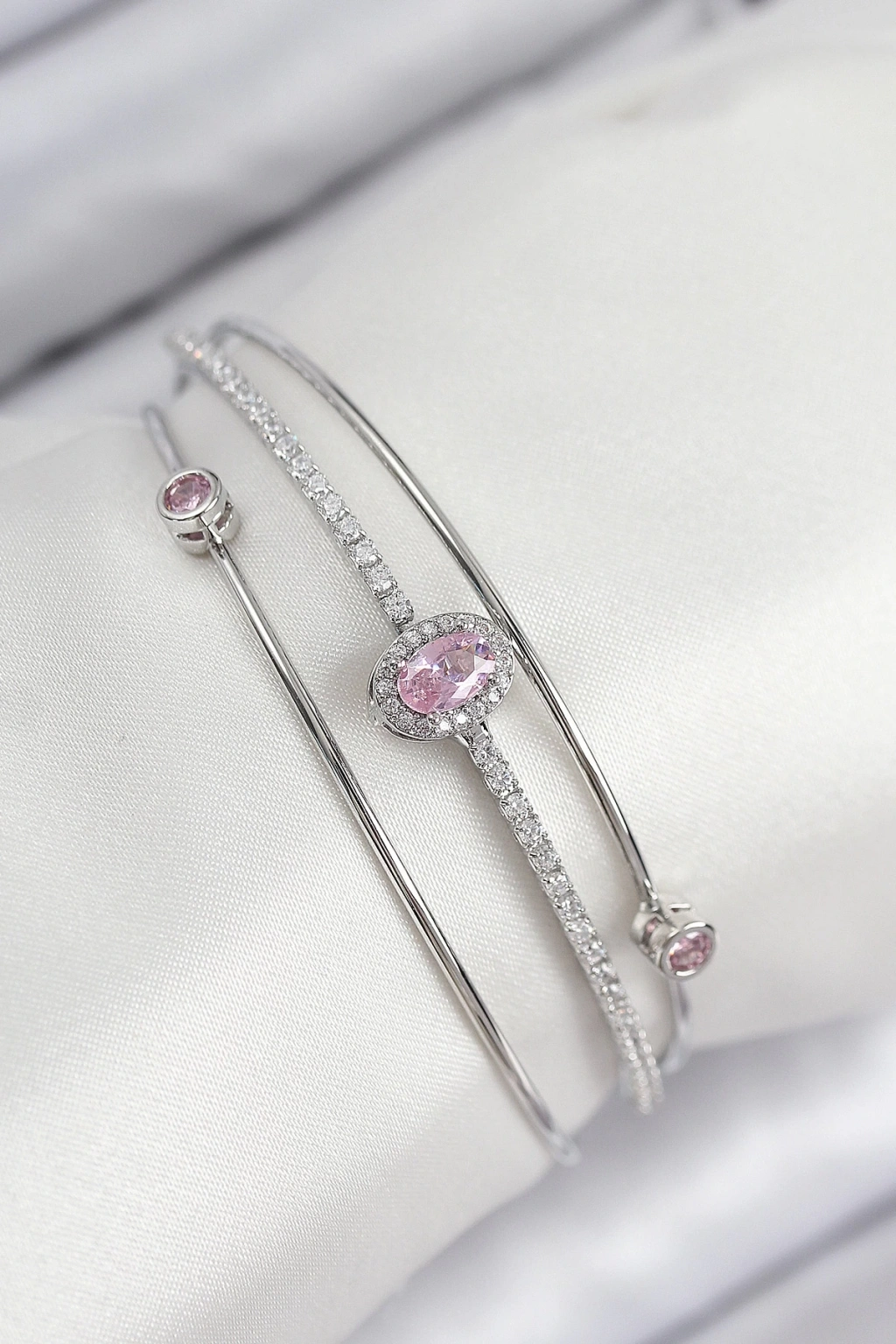 Pirinç Zirkon Taşlı Baget Model Gümüş Renk Kadın Bileklik