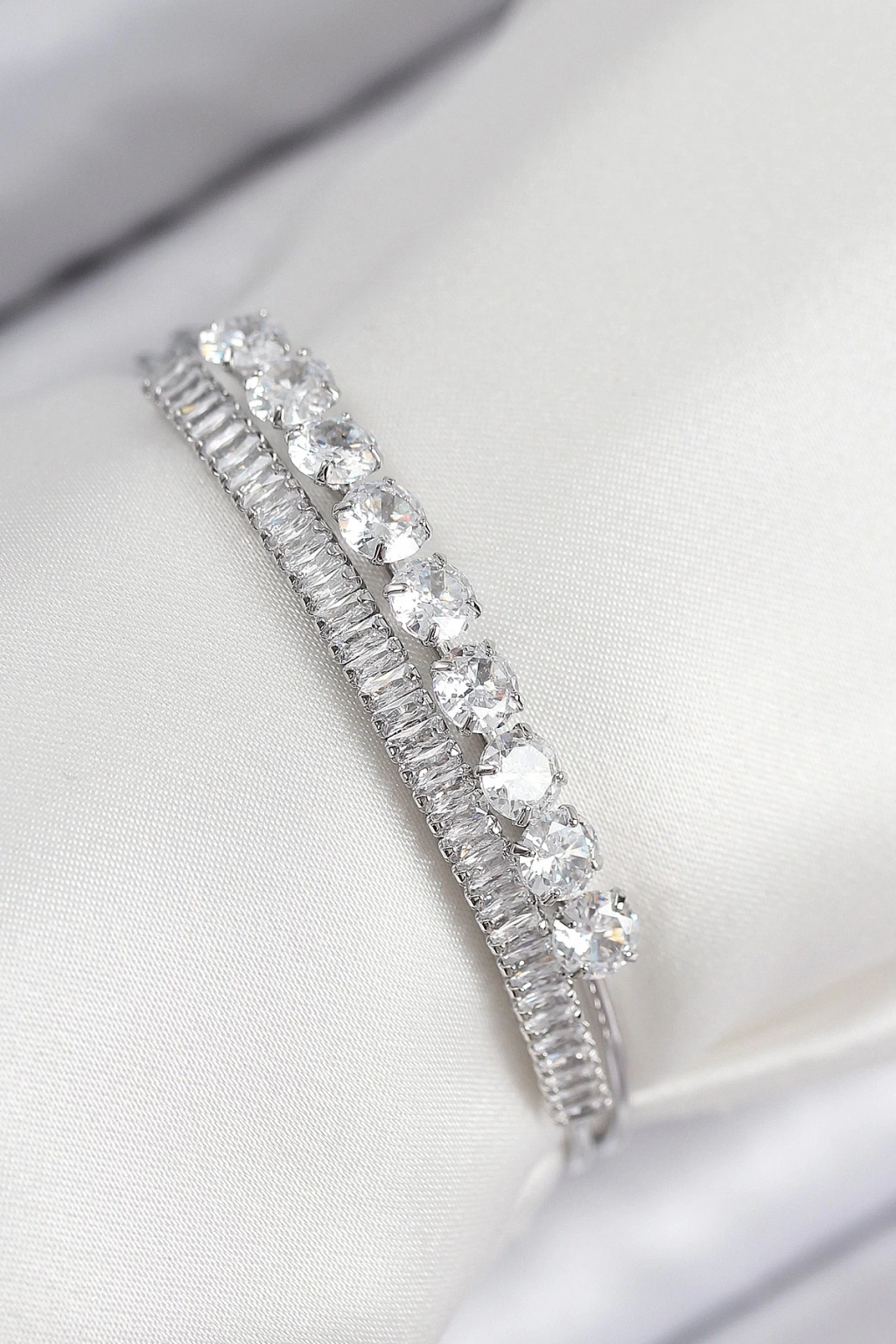 Pirinç Zirkon Taşlı Su Yolu Model Gümüş Renk Kadın Bileklik