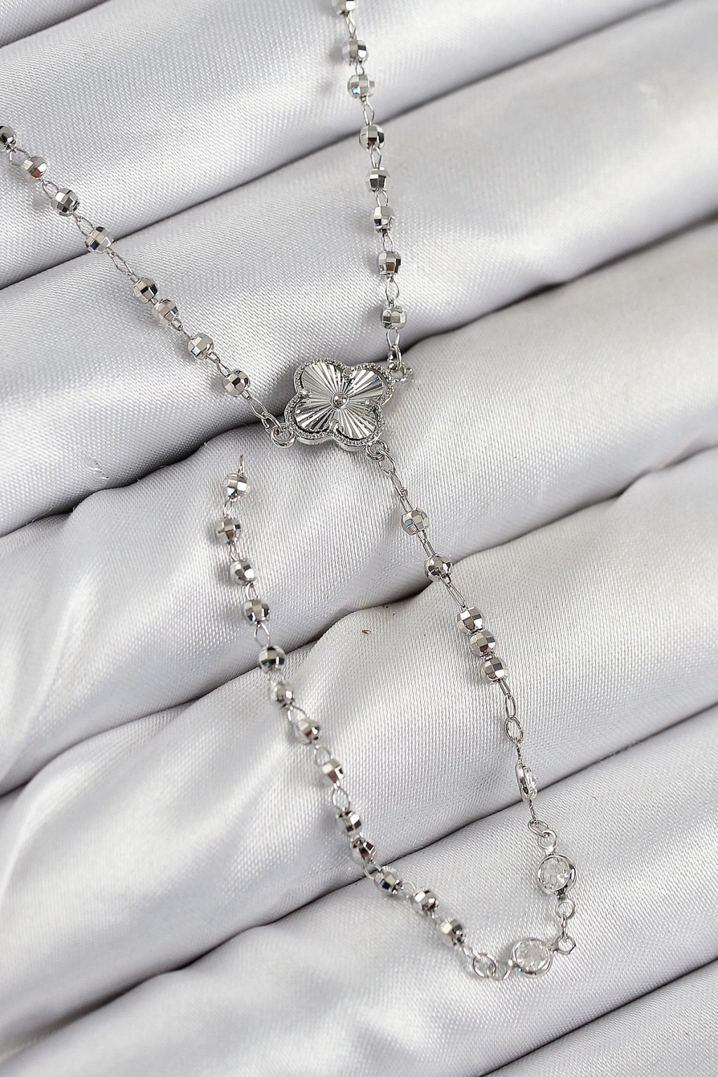 Pirinç Zirkon Taşlı Yonca Model Gümüş Renk Kadın Y Kolye